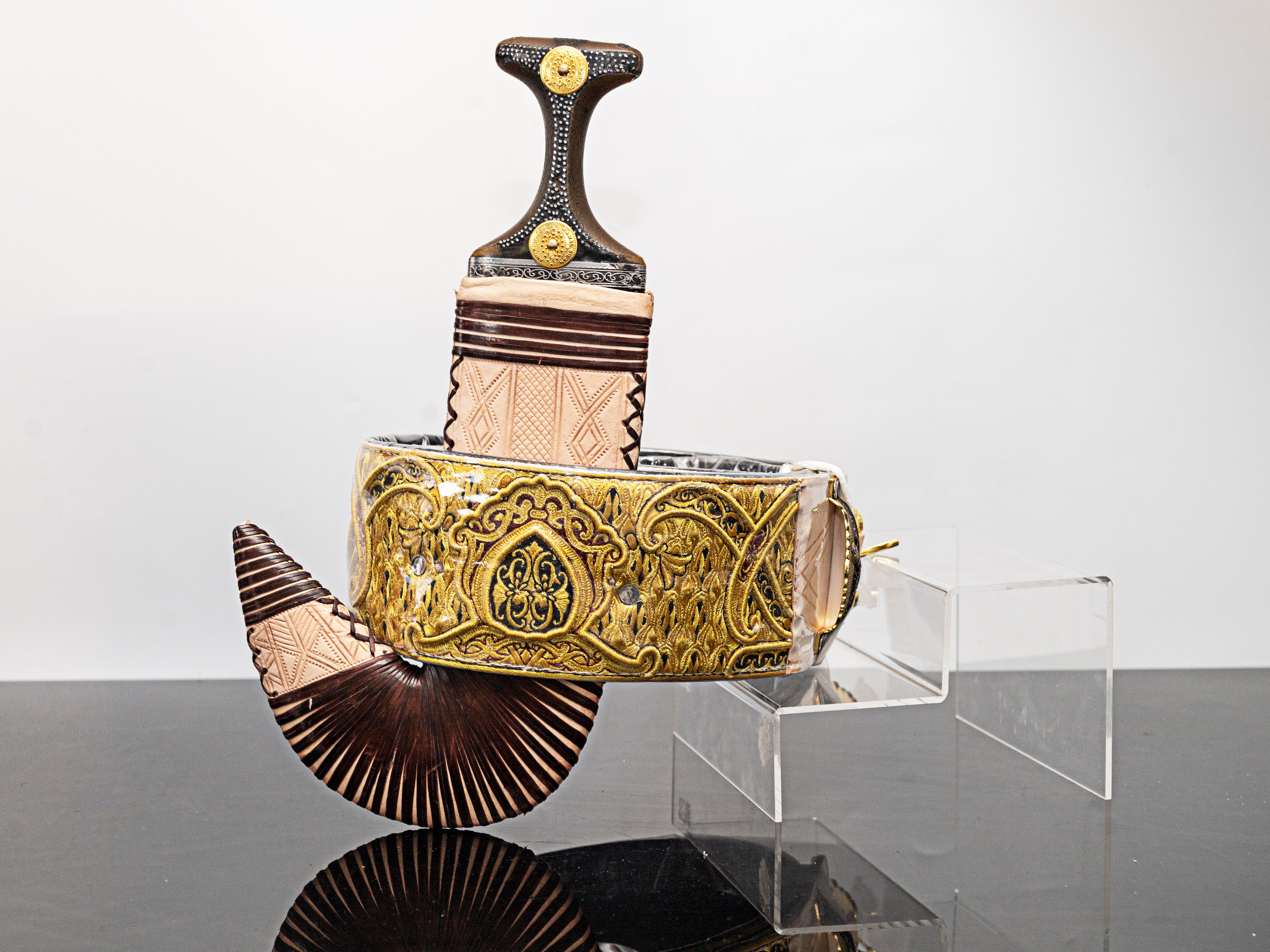 Adult Traditional Gold Belt with Leather Jehaz and Some of Brown Lines